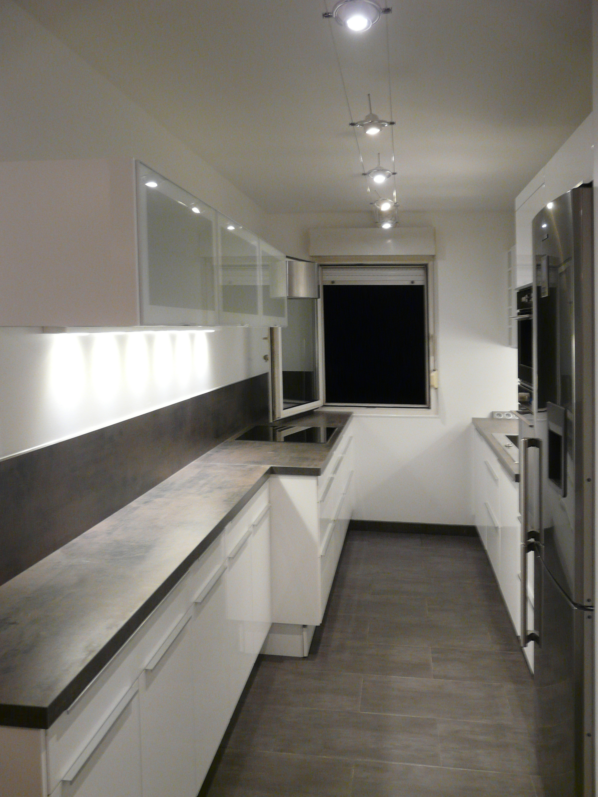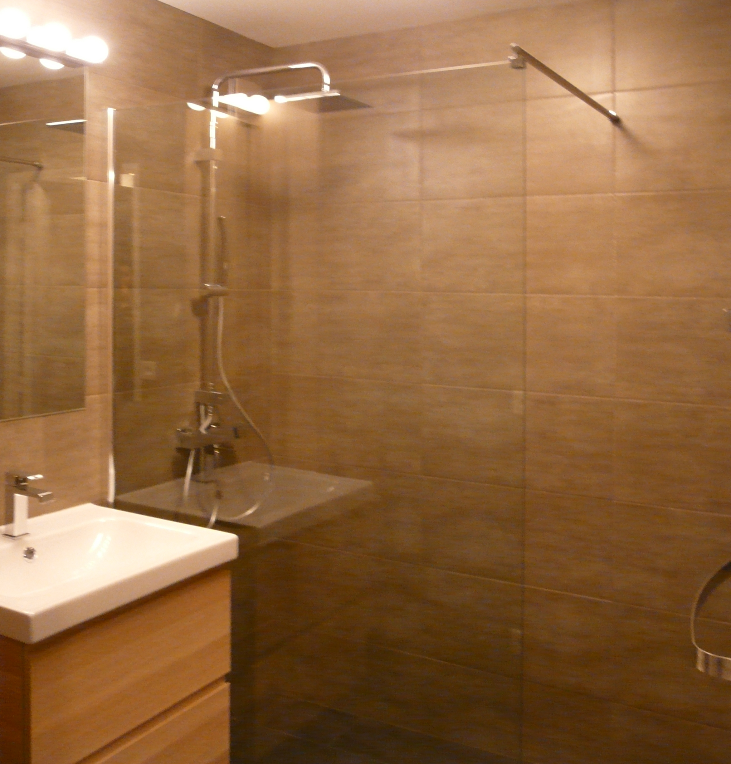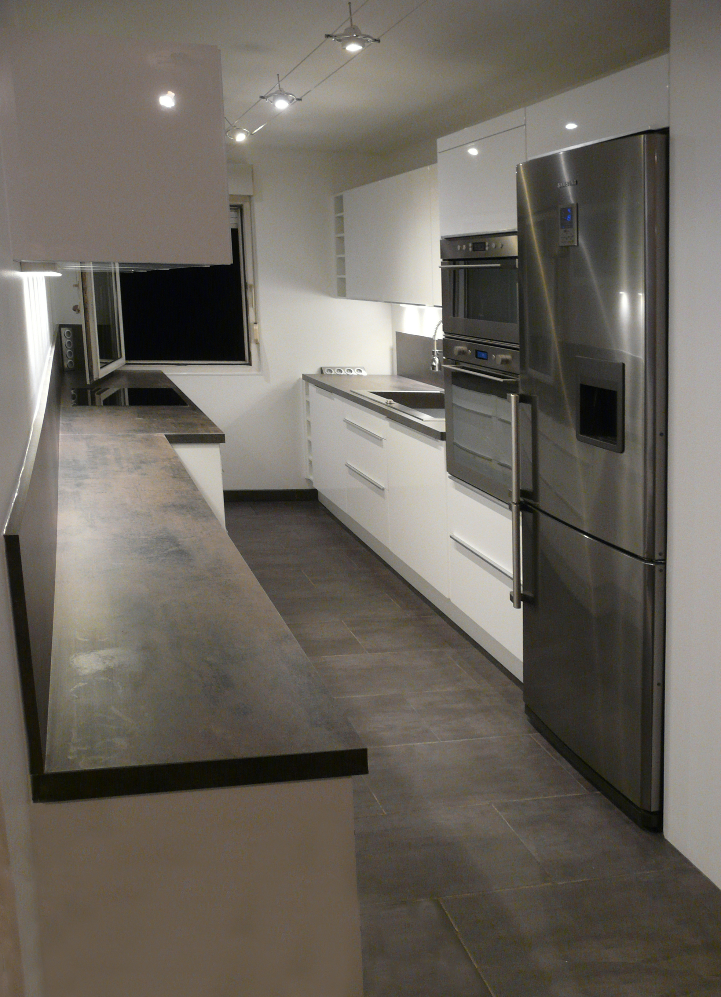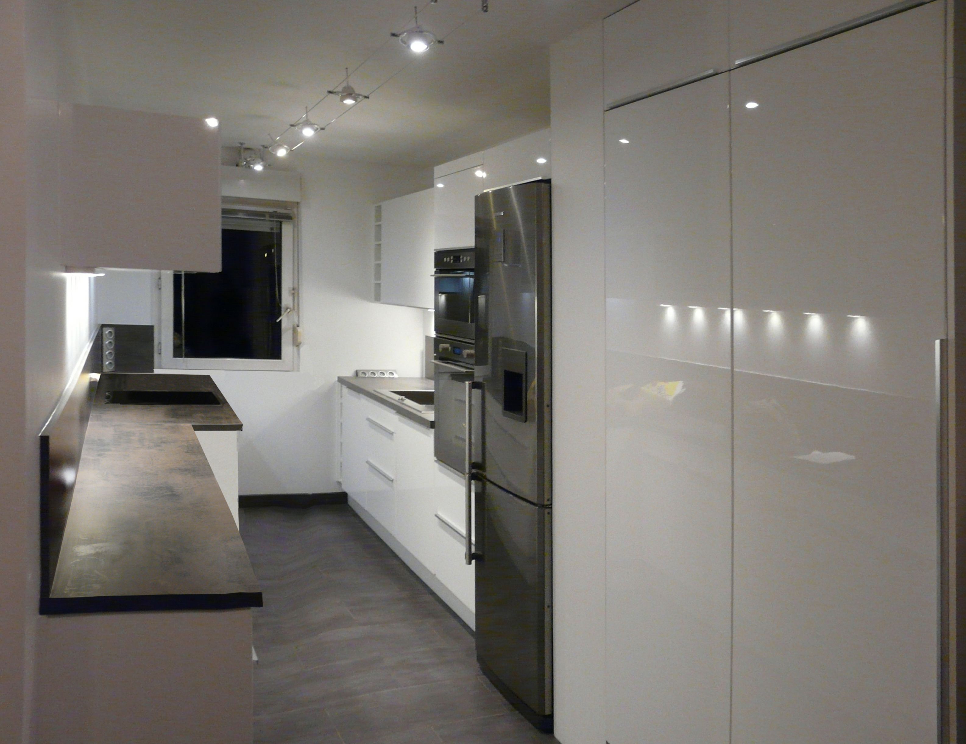 Pour cet appartement au dallage complet du sol et création complète de la salle de bain et de la cuisine.
