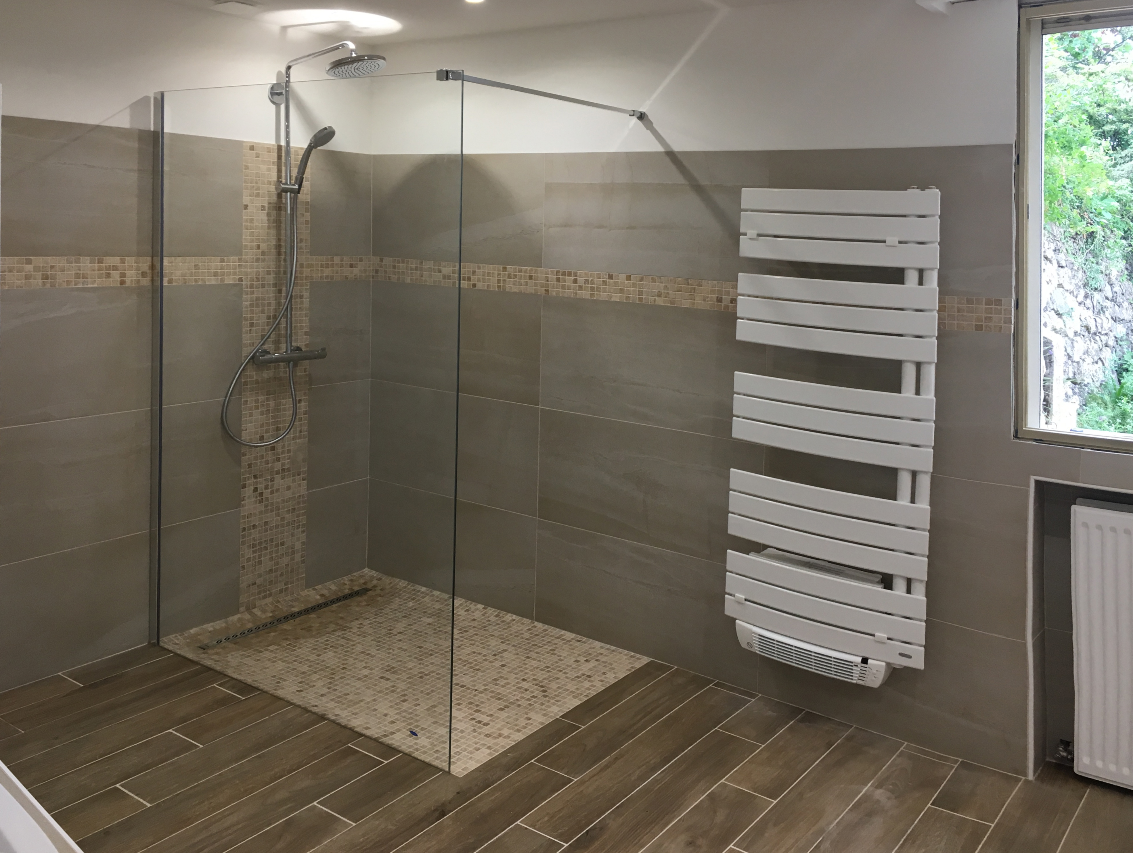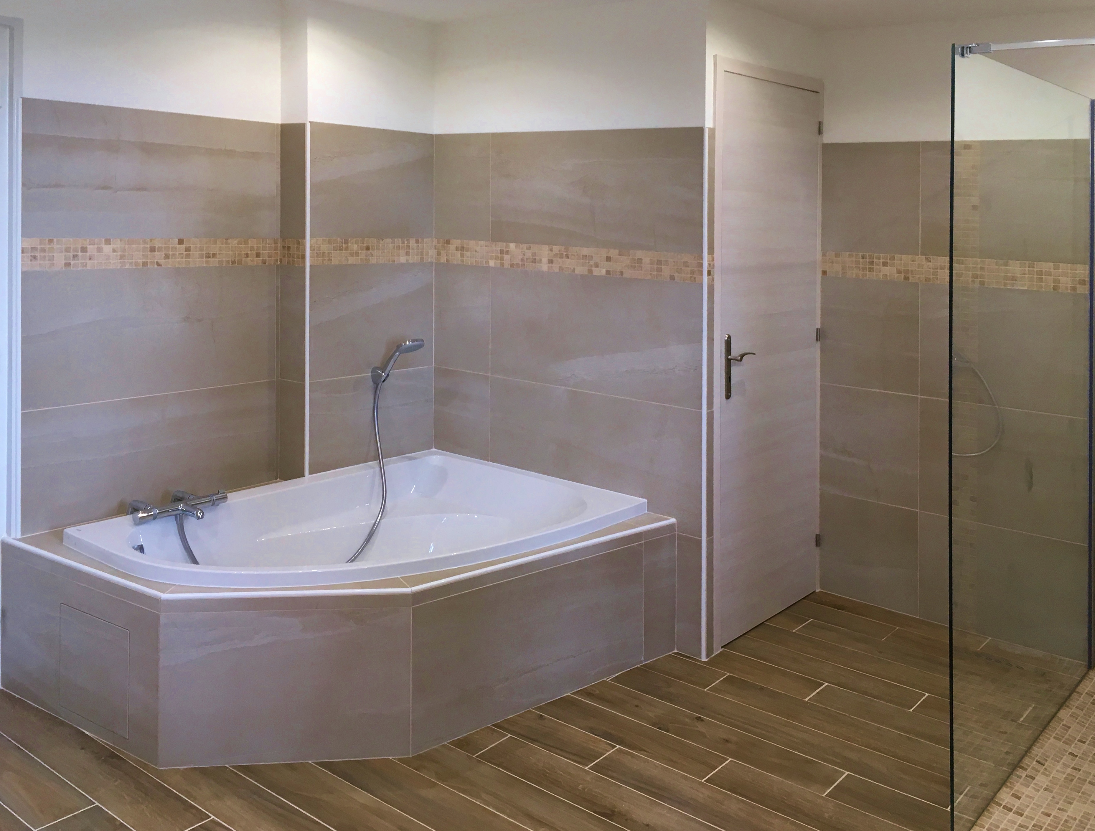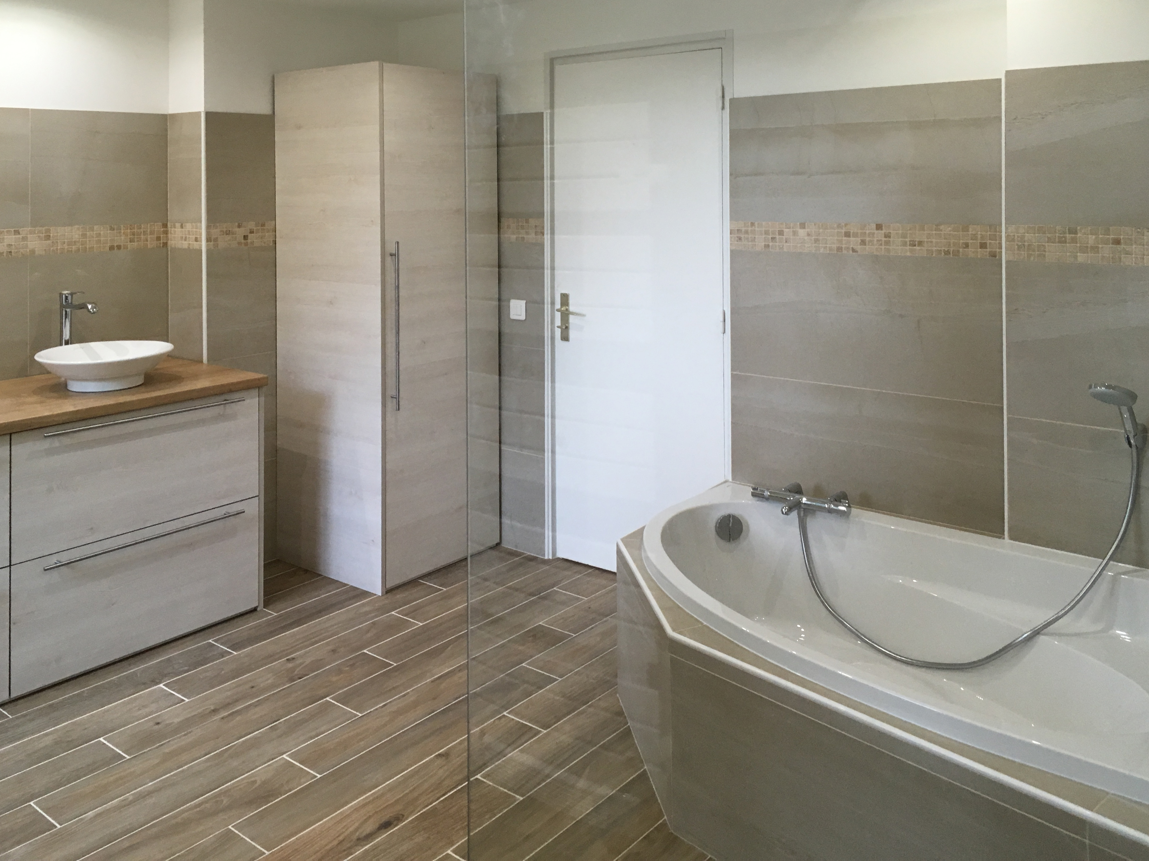 Rénovation complète d’une grande salle de bain, sanitaires, douche, bain